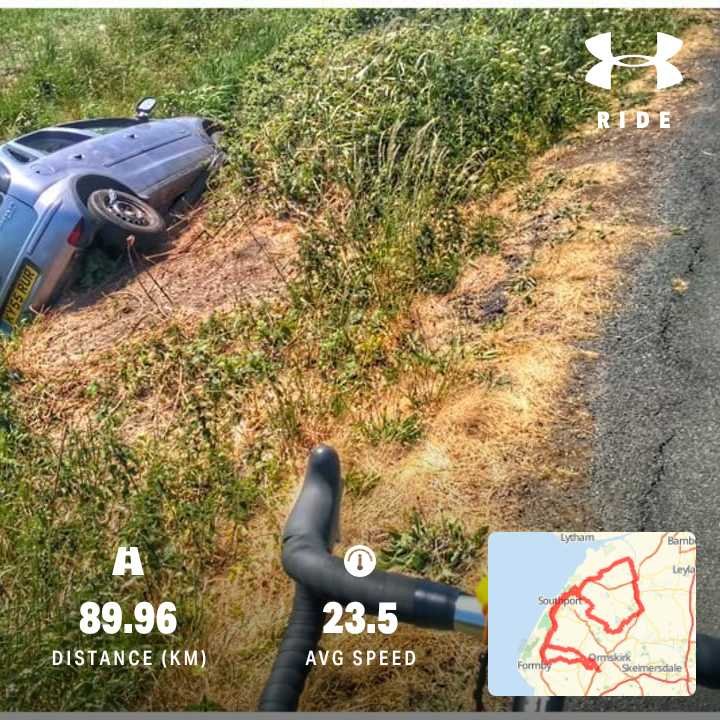 I don’t know how this can happen, it’s not what I call ‘Parked‘. Clearly, there is a gouge where the car skidded off the road but no rubber on the road.