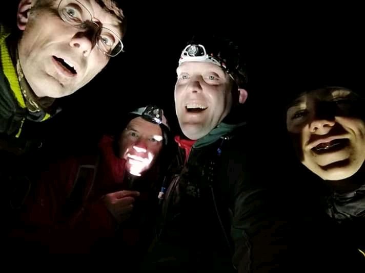 The descent from here took us back to rural farmland and into darkness. The last leg was nearly 2 hours of night walking. We had a good system running here which I shall pass onto kids. I led in front route finding on the ground and Carl followed with the map in hand. This works better than me holding the map because holding it up in the head-torch. destroys your night vision